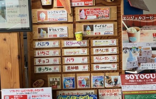 こちらは自家製オリジナルアイスとソフトの饗宴となる。 アイスの種類はとっても豊富で、いろいろな組み合わせが楽しめそう。