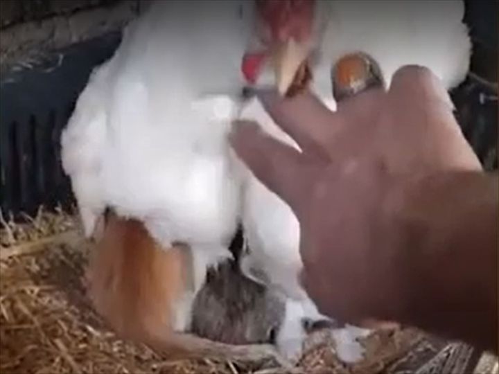 にわとりママさんが温めていたのは卵ではなく・・・とってもかわいい子たちでした!!