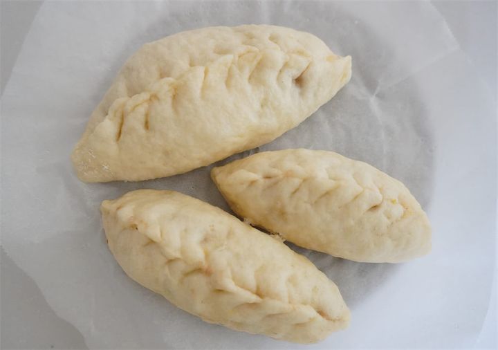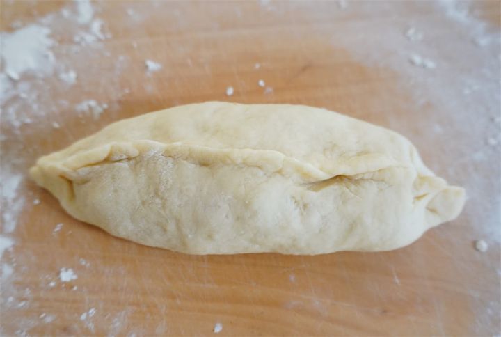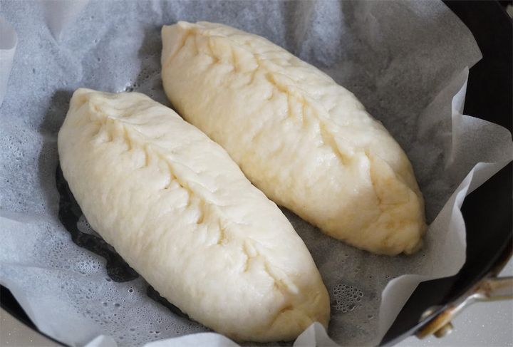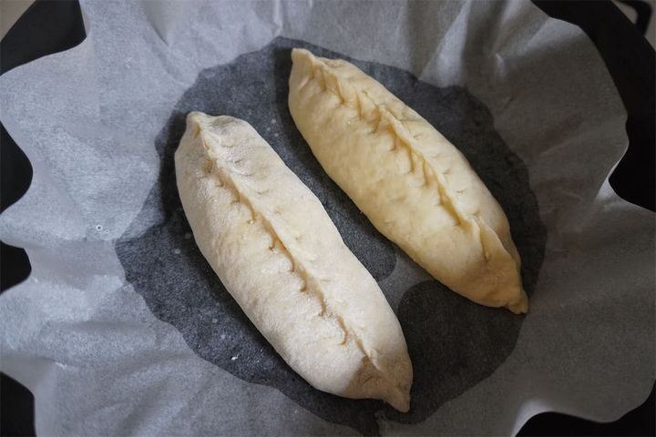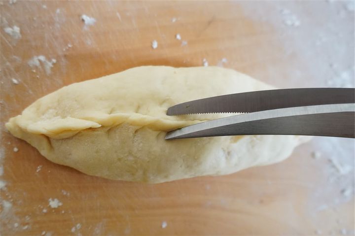 4等分にした生地は1つ約70gでした。15~18cm長さの楕円形に伸ばしました