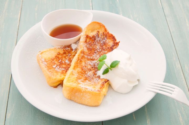 フレンチトーストは定番のアレンジ♪ふわふわで美味しく、1個でも満足感たっぷりです。フレンチトーストは卵液に漬け込んだあとに冷凍しておくと、味がしみてさらに美味しく食べられますよ。