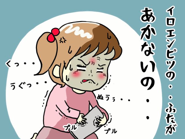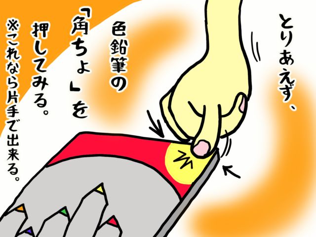 色鉛筆のケース!何度押しても開かないときありますねー(汗)ふた江ちゃんの困りごとは片手で解決できなさそう・・・どうしましょう!?(汗)