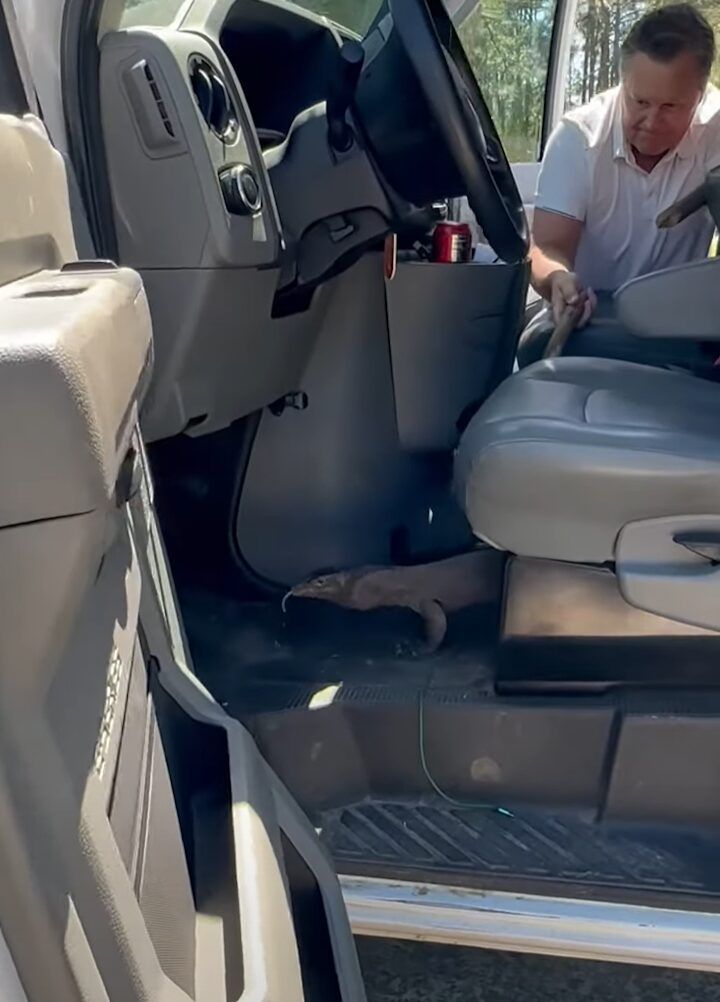 3. 車内にまさかの珍客!?大きなトカゲが侵入したので外に出てもらおうとした結果・・【アメリカ・動画】