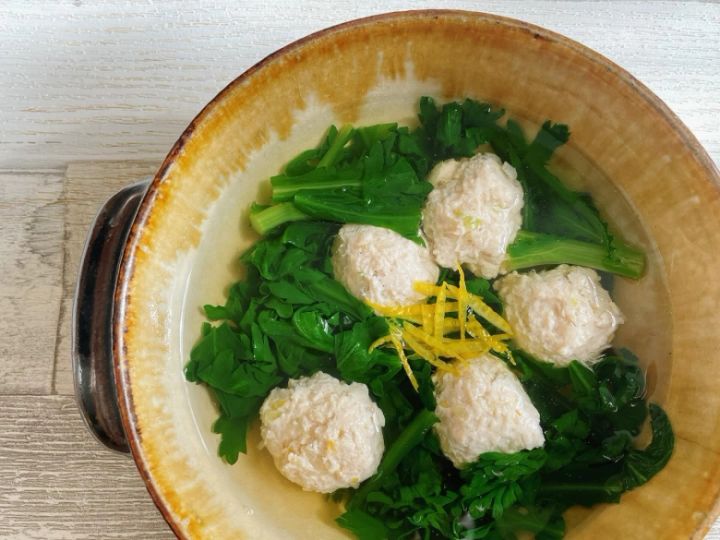 しっかり食べたいときは、鶏団子のスープを合わせるとボリュームのある献立になります。