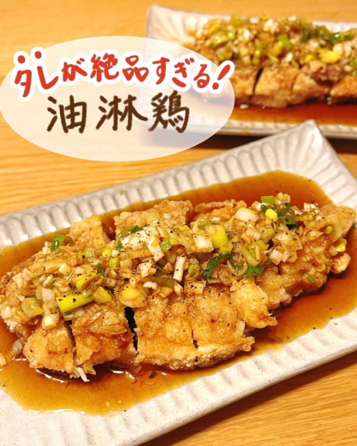 カリッと揚げた鶏肉に香味ダレをたっぷりかけた油淋鶏。甘酸っぱいタレがチャーハンの油っぽさを中和してくれるので、もりもり食べられるでしょう。