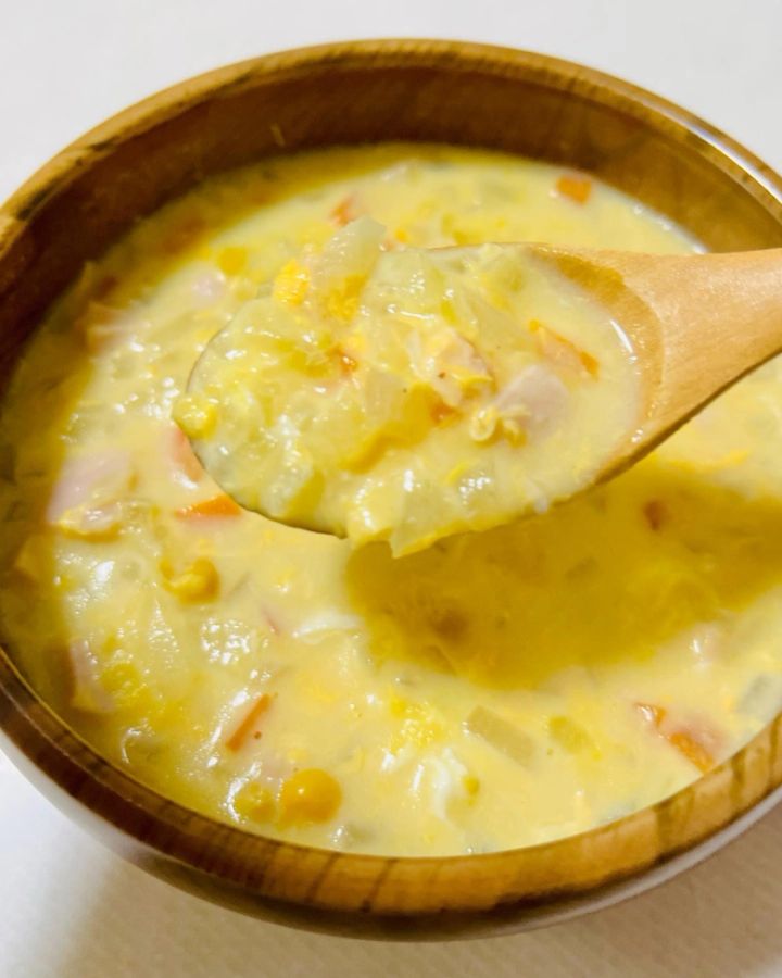 コーンスープの原料であるとうもろこしには、塩分を排出するカリウムが豊富。チャーハンの塩分が気になる方におすすめのスープです。