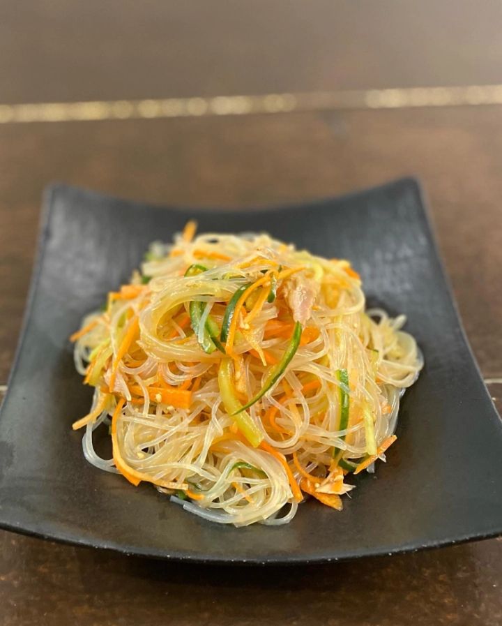 つるっとした春雨ときゅうりのシャキッとした食感が楽しい春雨サラダ。食べ応えはあるもののさっぱり食べられるので、濃い味つけのチャーハンにおすすめの副菜です。