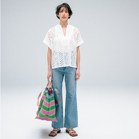 涼やかなカットワークレースが 上品の雰囲気に。 デニムコーデがキレイ見え