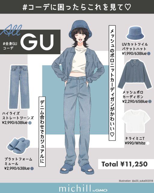 今回はGU「メッシュポロカーディガン」を中心に、見えそうで見えない、カジュアルだけど色っぽな着こなしをご紹介しました。