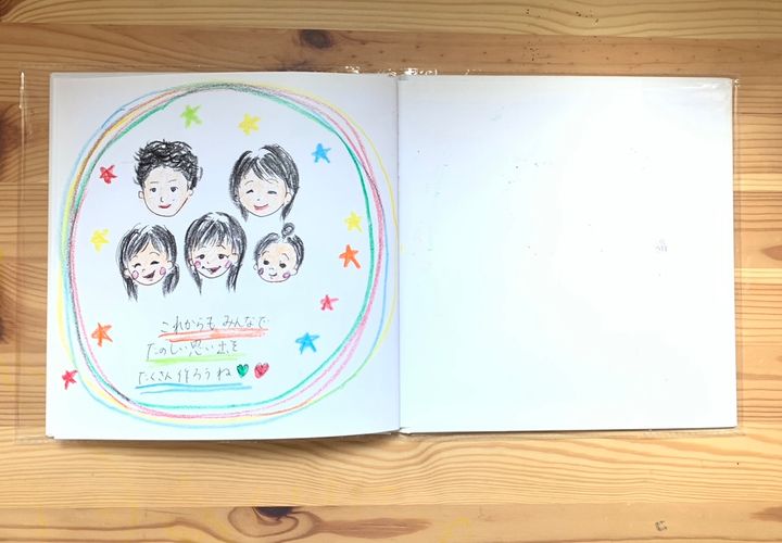 面白い写真や、お出かけ、旅行をした家族写真をチョキチョキぺたぺたしました!