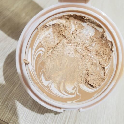 パクトの中をあけると蓋の裏側がざらざらした作りになっています。そこへさっきファンデをとったパフをトントンと叩きながら肌にのせる量を調整。この工程を入れることで厚塗り感をなくして素肌っぽさの残る仕上がりになるのです。