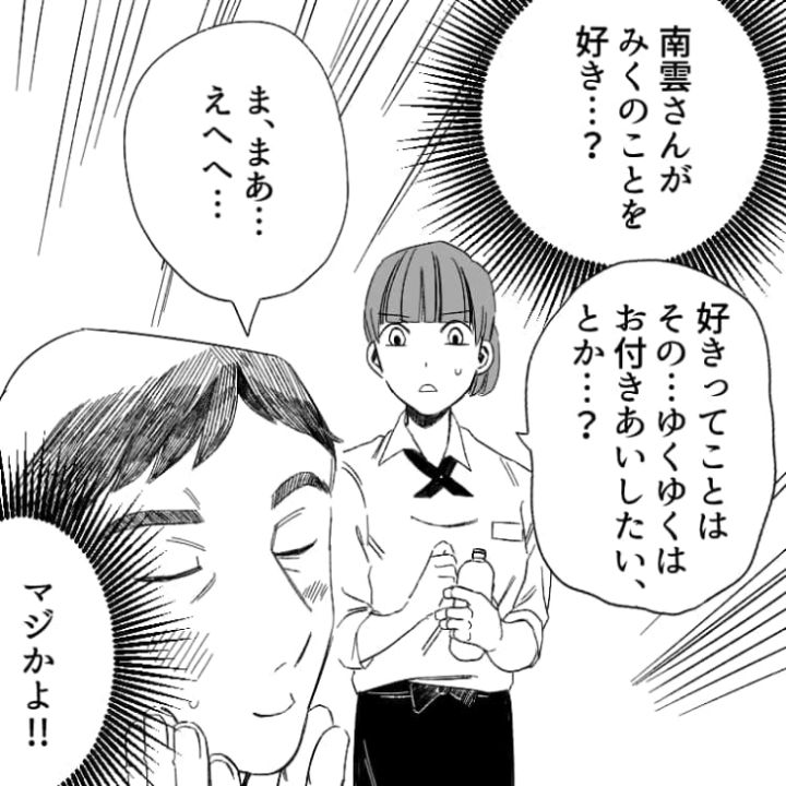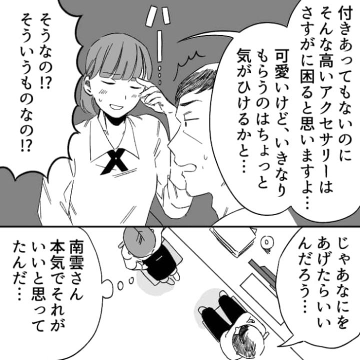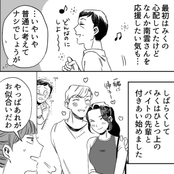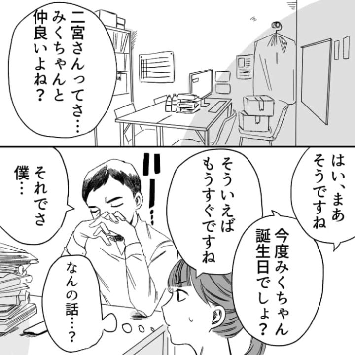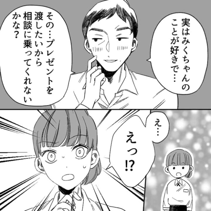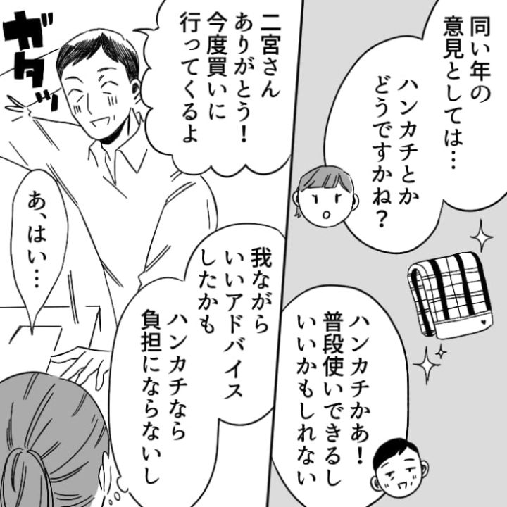 結局先輩と付き合ってしまった主人公の友達。上司もかなり悔しかったでしょう。しかし業務時間内にプレゼントの相談をする上司はいかがなものなのでしょうか。節度を守って相談するのがベストですね。