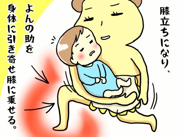 なんとしてもよんの助くんを抱っこしたまま起こすことなく問題を解決したいてる子さん。今回の相手はなかなか強敵ですね・・・(汗)