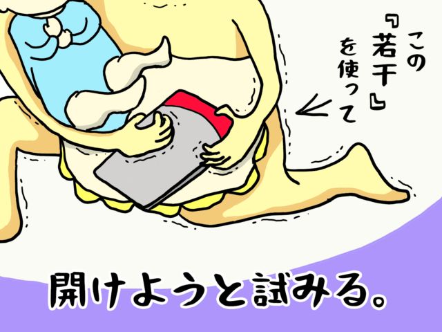 3. 【7】ふんぬぅ・・!なんとか両手を使って試みるも・・ビクともしない。孫のお世話でよみがえる4人育児の思い出|てる子の育児日記