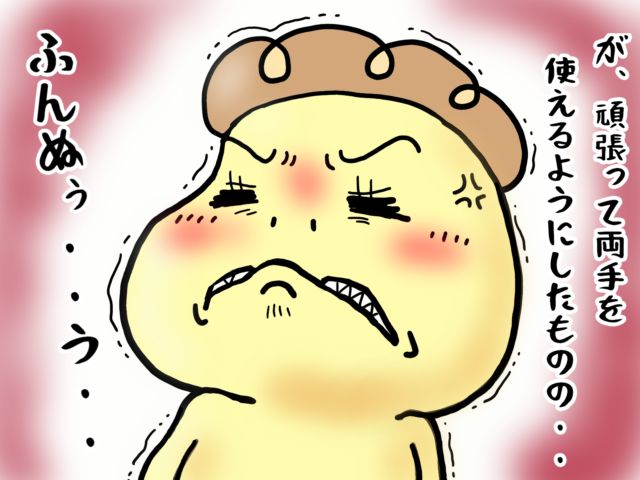 【7】ふんぬぅ・・!なんとか両手を使って試みるも・・ビクともしない。孫のお世話でよみがえる4人育児の思い出|てる子の育児日記
