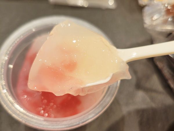 この白い部分にカカオパルプが使用されているそうです。フルーツのジュレとマーブル状に合わさっていて、フルーツの甘みとさわやかな酸味がマッチします。オレンジ、ピーチ、ラフランスの3種と、ショコラ、ストロベリーがセットに。