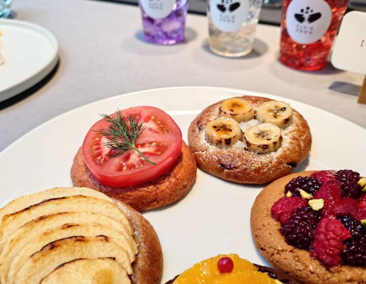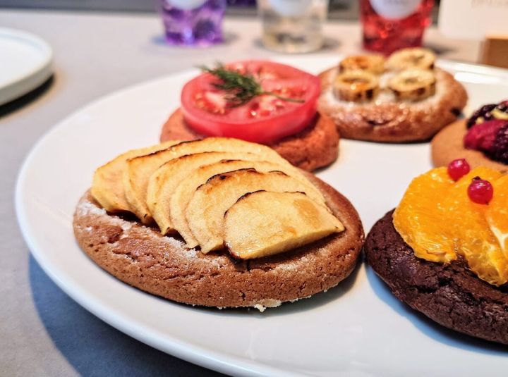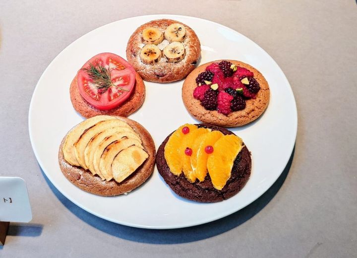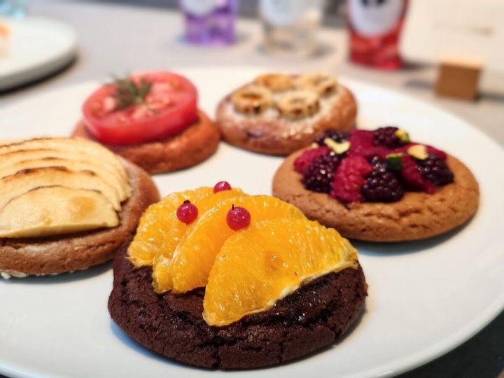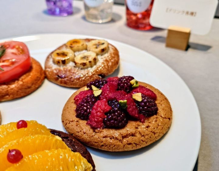 「つながる・創造」をテーマに、通常店舗では販売していない“焼きたて”のクッキーが初登場しています。開発に2年以上かけて誕生した創造性あるクッキー(2タイプ/全5種類)。食感違いの生地を重ねた2層の焼きたてクッキーに果物や野菜などを組み合わせて“パレット”のように美しい。金曜と土曜の夜には「クッキーの夜会」も開催しています。