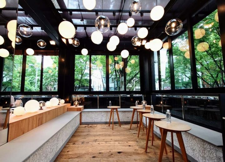 お店の2階にはイートインスペースもあり、1人1オーダー制(未就学児無料)で利用OK。表参道の木々の緑とアートに囲まれた空間でゆっくりと楽しめます。