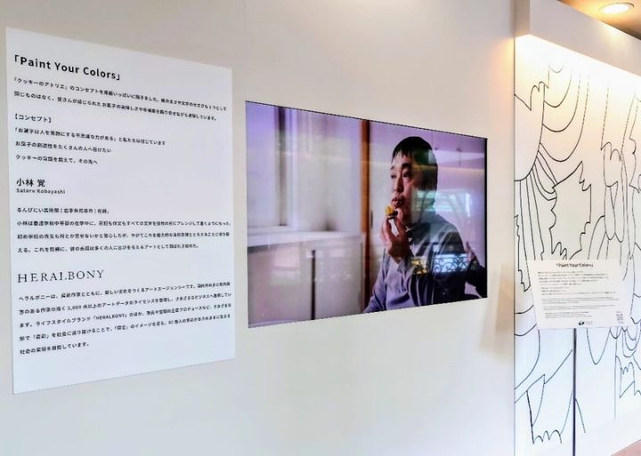 ちなみに、本企画の「クッキーのアトリエ」の作家には、岩手県「るんびにい美術館」在籍のアーティスト小林覚(さとる)さんを起用。知的障害があり、養護学校中等部在学の頃から日記も作文もすべての文字を独特の形にアレンジして書いているという小林さん。