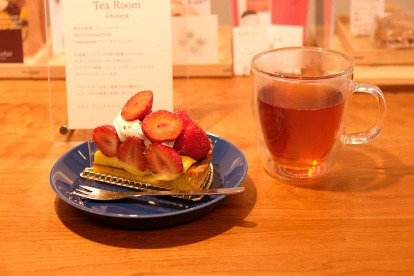 実は、こちらのお店の隣の建物には「COCONOMI」さんというケーキ屋さんがあり、そちらのケーキをテイクアウトして店内でいただくこともできるそう。紅茶とケーキ、最高!ケーキはお隣のお店でいただくことにして、紅茶を注文します。 紅茶の種類は、ウバ、ニルギリ、アールグレイの3種類。さらに期間限定フレーバーティーも用意されています。これ以外にも、お客さんの注文したフードに合わせてお店の方が紅茶を選んでくれたり、夜遅くに紅茶を楽しむ方のためにノンカフェインの紅茶もあるそうです。5月のフレーバーティーは「Fraise Special(フレーズスペシャル)」。イチゴのナチュラルフレーバーで香りづけされ、アップルの果肉、ローズヒップ・ハイビスカスもブレンドされています。なんて美味しそう!期間限定のフレーバーティーをお願いしました。