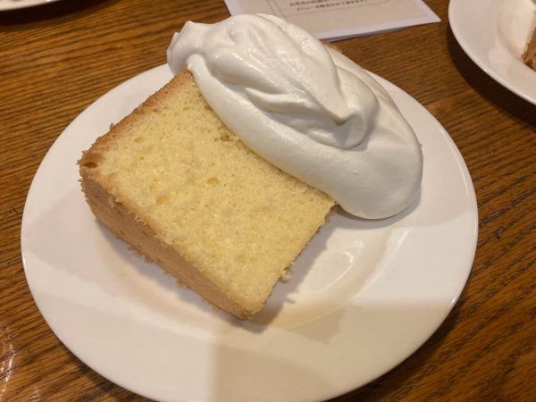 そんな美味しいコーヒーに添えられた大きなシフォンケーキには生クリームがたっぷり♡