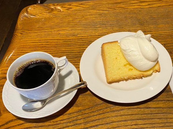 今回は人気のケーキセットを頂いてきました。オーナーが入れてくださったコーヒーは地下60mからくみ上げた井戸水。お水にまでこだわっているのですね〜。