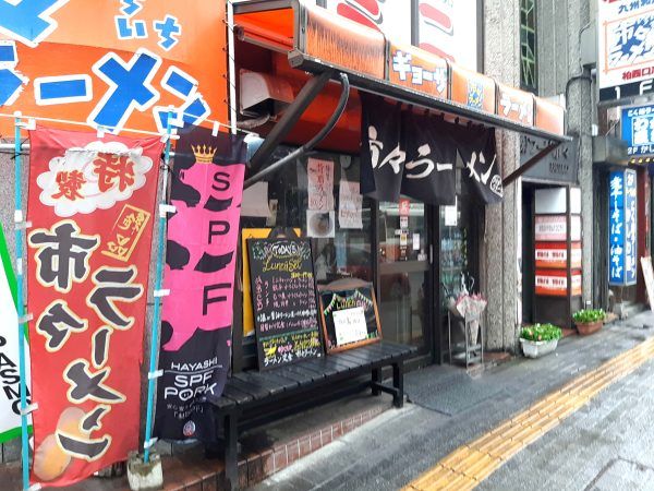 柏駅西口から徒歩1分の市々ラーメン。オレンジのひさしが目印です。通り過ぎないように注意して下さい。