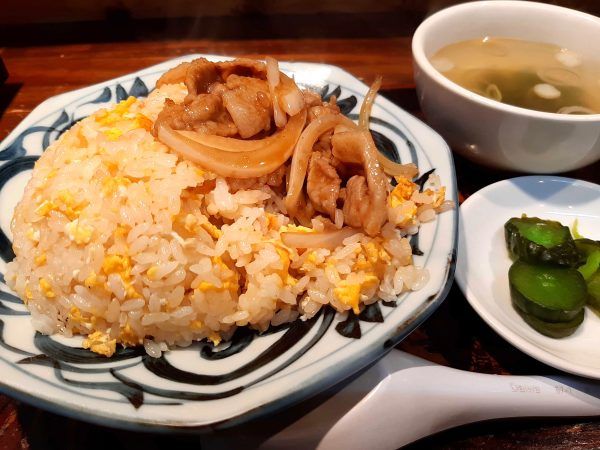 日替わりの焼肉チャーハンです。シンプルな盛り付けで、ラーメンが正解だったかな、と正直思ってしまいましたが、いざ食べてみると美味しかったんです。