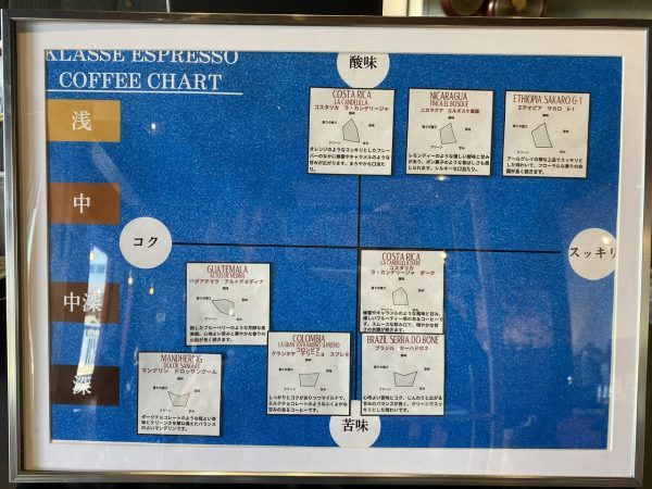 カウンターにあるコーヒーのチャートがわかりやすく、好みを伝えると、親切なアドバイスが。