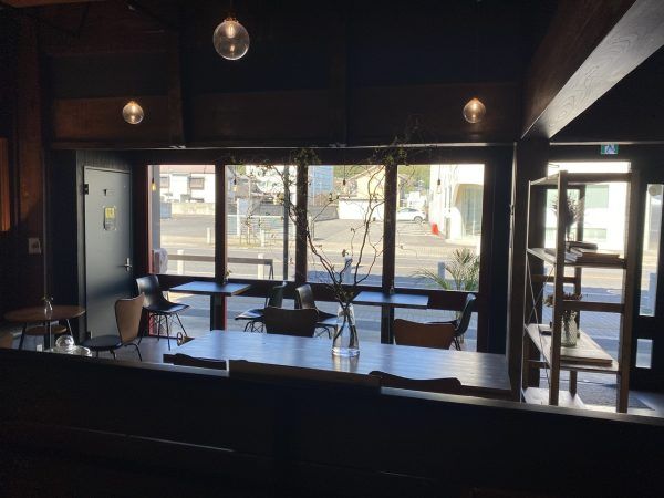 どこに座ってもリラックスして過ごせそう。窓際で外を眺めながらもいいけど、全体が見渡せる奥の席に座ってみました。奥の席からの外の眺めもいい感じ。