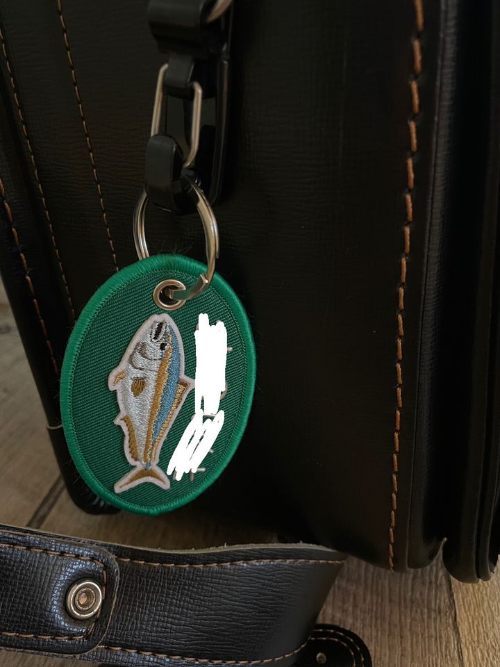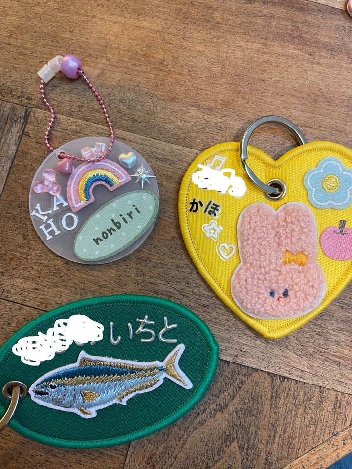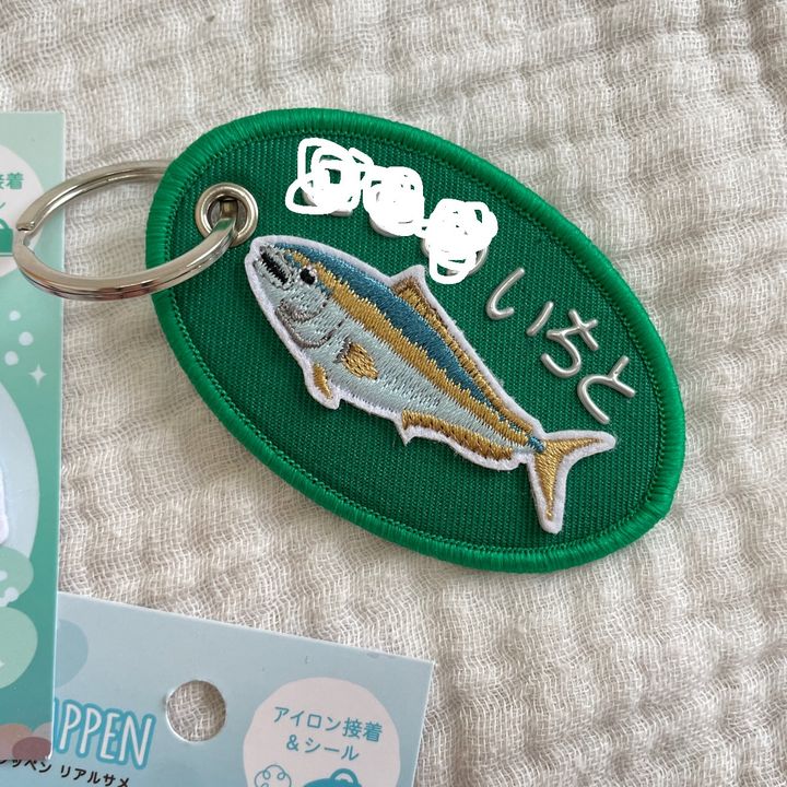 そこにおさかなワッペンと、名前を付けたらネームキーホルダーの完成♪