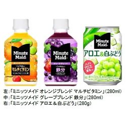 日本コカ・コーラの「ミニッツメイド」新製品を含む3種セットをプレゼント。「ミニッツメイド」ブランドから、新製品の「ミニッツメイド オレンジブレンド マルチビタミン」、製品名とパッケージをリニューアルした「ミニッツメイド グレープブレンド 鉄分」、パッケージを9年ぶりにリニューアルした「ミニッツメイド アロエ&白ぶどう」が全国で販売中です。