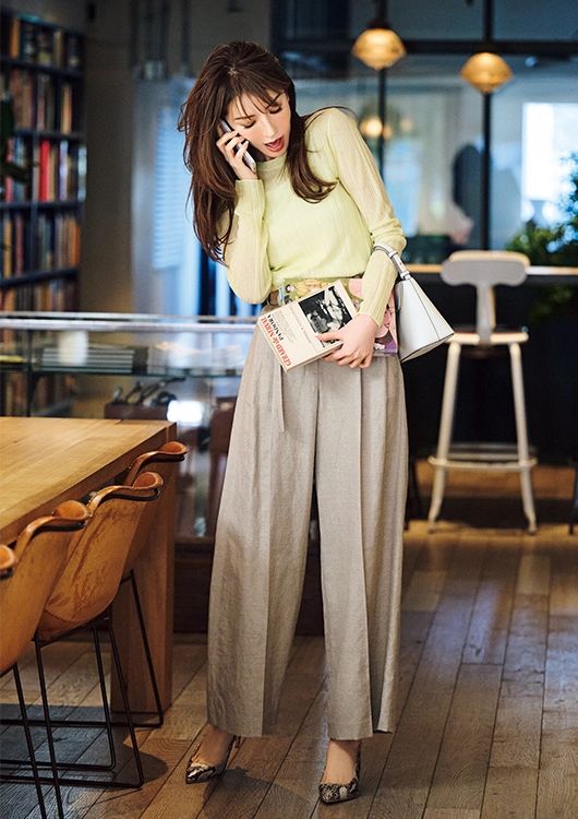 シアーリブニット¥14,300、パンツ¥29,700/ともにELENDEEK バッグ¥13,200/ル・ベルニ(キャセリーニ) パンプス¥22,000/ルーニィ