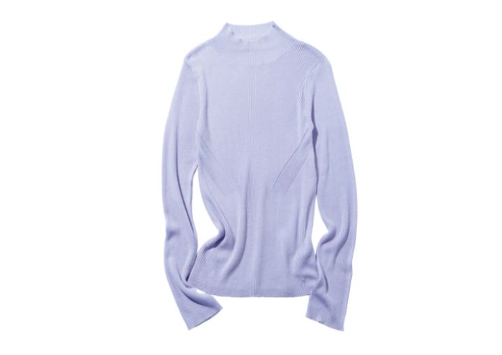 ほどよいシアー感はレイヤードに最適。シルク入りの素材だからピタピタと張りつかない。ハイネックリブニット¥8,580/ココ ディール