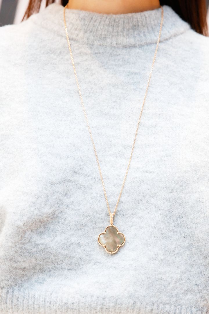VERYママの偏愛ブランドであるヴァン クリーフ&アーペル。なかでも、上級者のママたちの間では重ね付けが秘かなトレンドに。指輪やネックレス、ピアスなどコーデのなかでアルハンブラをリンクさせているワザも。クラシカルでさりげない形だからこそ、重ね付けも派手になりすぎず上品さを保っているんです。