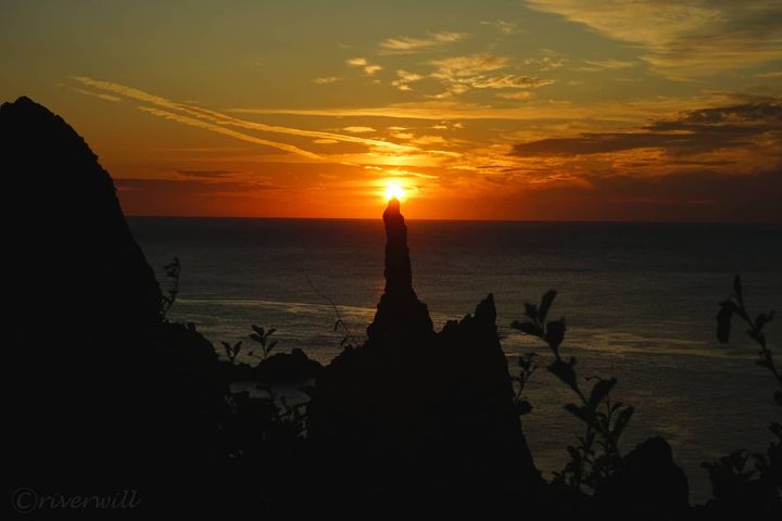 ローソク島は崖の上の展望台からも一望できますが、遊覧船にて海上から眺める巨大ローソクの夕景はじつにロマンチックですよ。