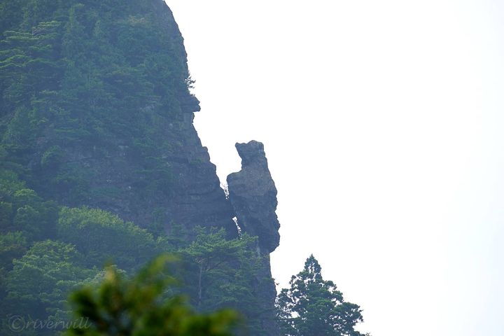 昔々、とある侍がこの地で身の丈七尋(ななひろ・約12.6m)にもなる女妖怪に出くわし、刀で斬りつけたところたちまち石化した……という古い言い伝えが残る岩で、岩そのものの高さは約6m、幅は2mほどです。
