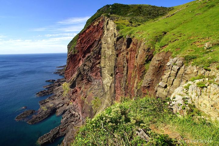こちらも知夫里島西岸にある断崖絶壁の「赤壁(せきへき)」。