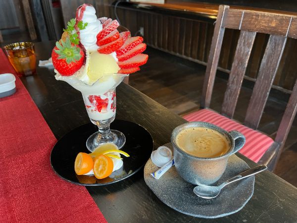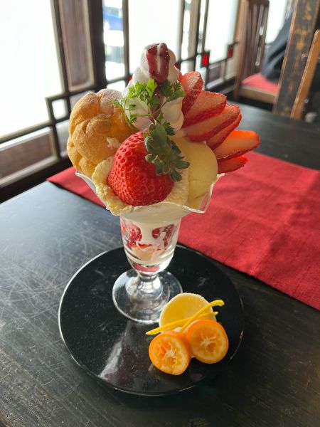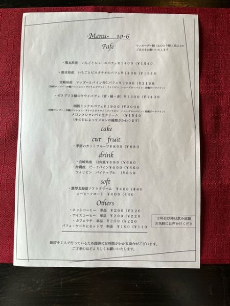 季節ごとに旬のフルーツの内容に変わるとのこと。 次は、キウイパフェが登場しているっぽいです!