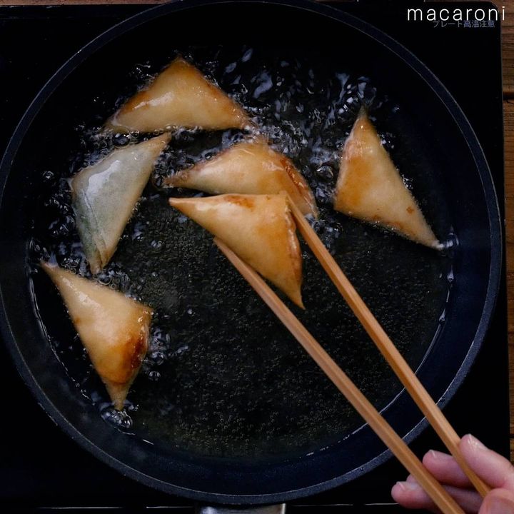 4: 170℃に熱した油で3〜4分揚げたら完成です。