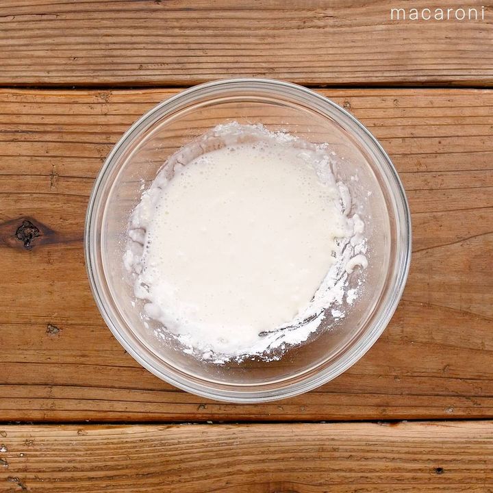 1: ボウルに衣の材料をさっくりと混ぜ合わせます。