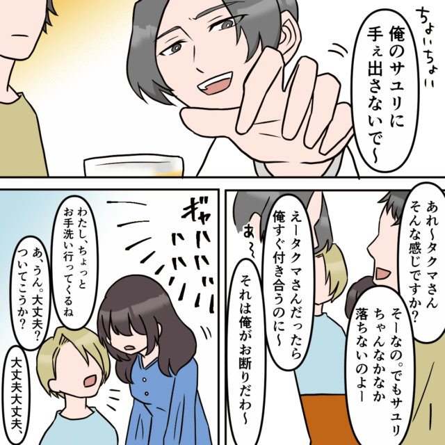 「サユリちゃんなかなか落ちないのよー」と冗談めかしく言うタクヤさん達が盛り上がるなか、サユリは全く気にしていない様子でお手洗いへ席を立った。