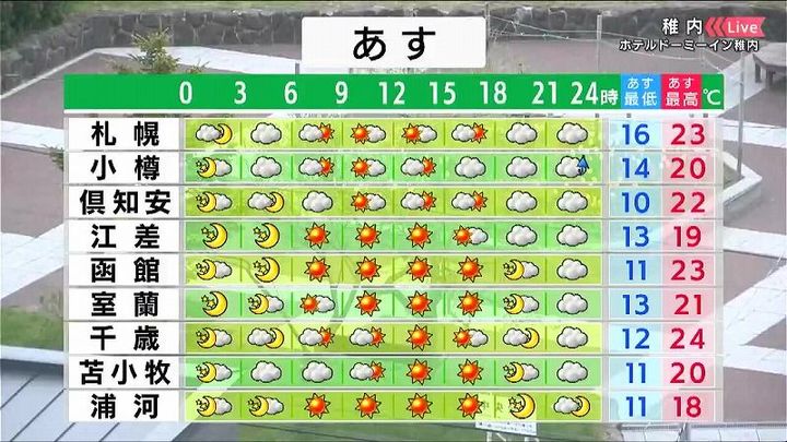 札幌の朝の最低気温は16度。今夜はパジャマ少し薄めでも良さそうです。