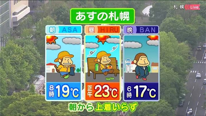 あすの札幌、朝昼晩の天気をもんすけでお伝えします!