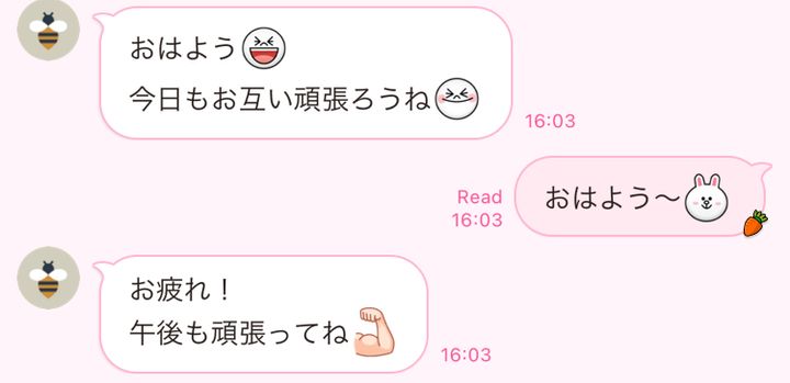 「おはよう」と挨拶がきたかと思えば「今日も頑張ってね!」と続いていたり、「おやすみ」と届いたかと思えば「明日もお互い頑張りましょう」と書いてあったり…。そんなに頑張りたいならひとりで勝手に頑張ればいいのに、一体この人は、何をこんなに頑張らせたいのか…と思わずツッコミたくなります。