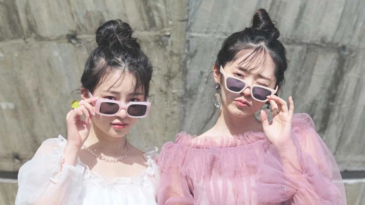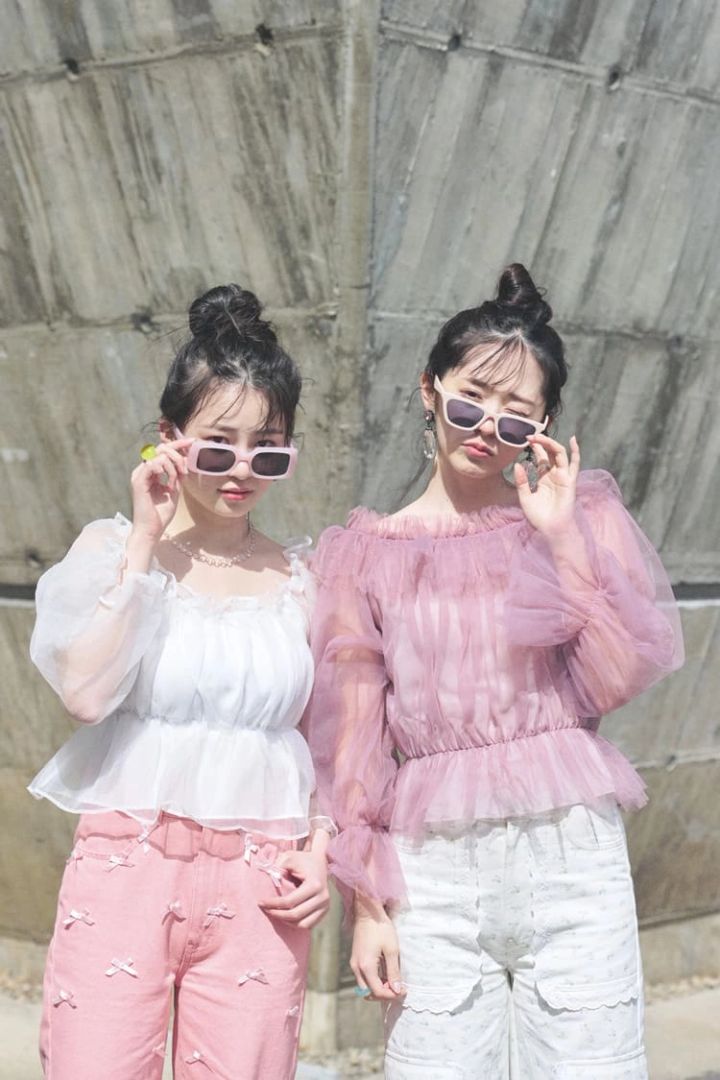 右:パープルチュールトップス 12,100円/Noela 白花柄ワークパンツ 14,300円/merry jenny イヤリング 11,550円、白リング 5,400円/ともにアビステ サングラス 6,050円/キャセリーニ ブルーリング 7,800円/ma minette 左:白シアーシフォントップス 6,900円/NADIA FLORES EN EL CORAZON ピンクリボンデニムパンツ 12,100円/merry jenny サングラス 6,600円/キャセリーニ ネックレス 1,650円/ラティス リング 5,400円/アビステ