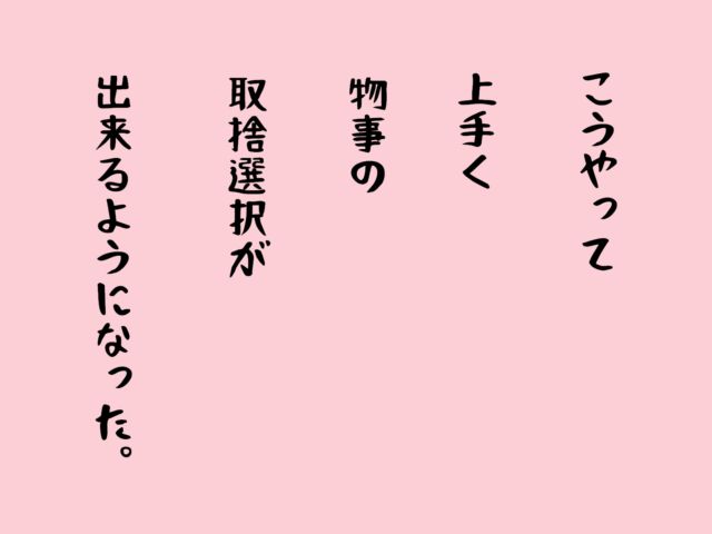 あたしには全てを完璧に全部をやるのは無理だから、上手く諦める事が出来るようになった。