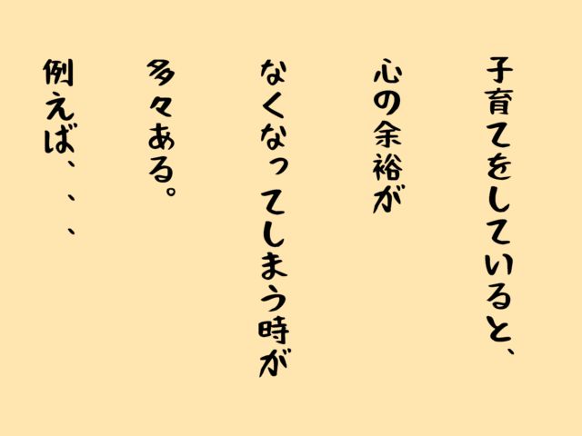 子育てをしていると、心の余裕がなくなってしまう時が多々ある。