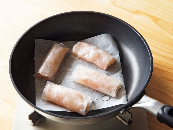 自分で作るのは難しいメニューだと思われがちですが、実はライスペーパーを使えば家でも手軽に作れちゃいます!しかも蒸し器は使わず、フライパンがあればOK!