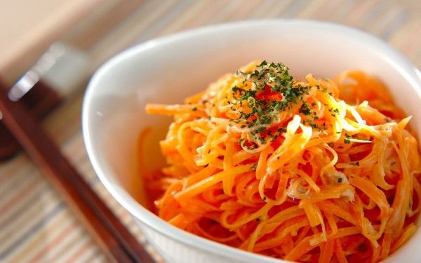 みんなが大好きなツナマヨ味で、ニンジンがたっぷり食べられます。大人用にはマスタードで辛味を効かせても◎。電子レンジで簡単に作れて、もう1品欲しいときにも便利。ビタミンカラーで食卓も華やぎます。