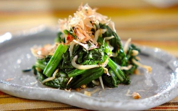 ホウレン草にチリメンジャコをプラスして、旨味も栄養もたっぷりに! くせがなく、あっさりといただけます。豚こま×キャベツの献立に不足しがちな栄養をカバーできるのもポイント。